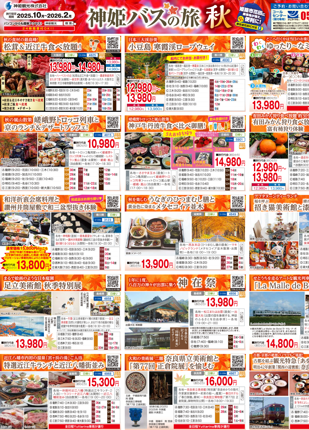 No.4815秋の嵐山散策嵯峨野トロッコ列車と京のランチ&デザートブッフェ!