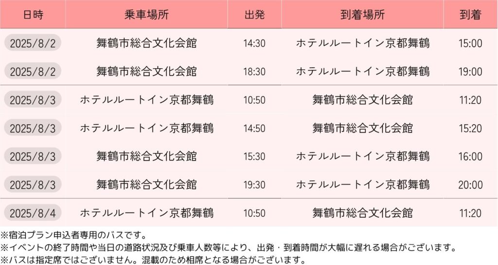 ■宿泊プラン申込者限定(会場-ホテル)間 スケジュール