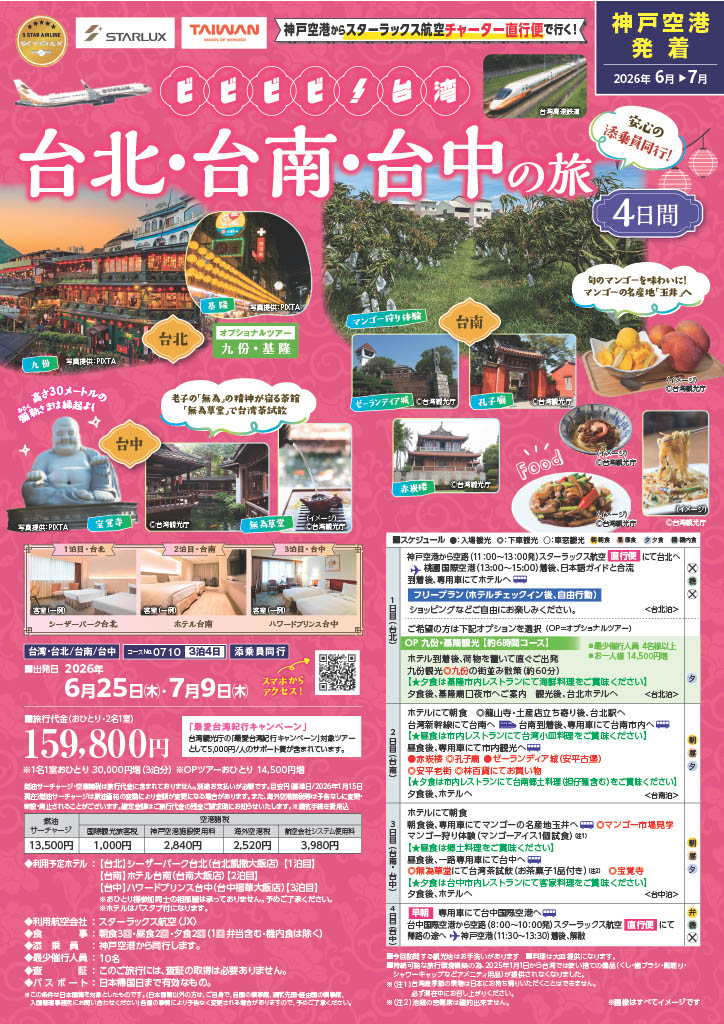 スターラックス航空直行便で行く 台湾の旅4日間 お申込みはこちら